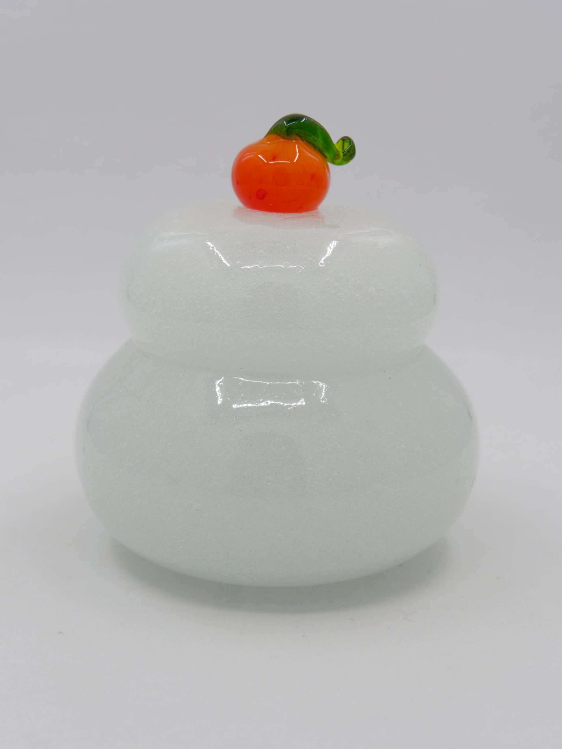 Kagami Mochi is a traditional Japanese New Year decoration made of two stacked rice cakes topped with a small citrus fruit. It symbolizes prosperity, longevity, and the welcoming of ancestral spirits. Our glass version captures this timeless motif with elegance and warmth, perfect for modern interiors while honoring ancient tradition.
